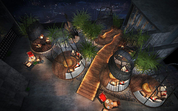原有結構被突破,設計師通過游廊、連橋等形式將各功能區連接在一起,將陽光、空氣、清新的自然引入室內,使得顧客必到之處仿佛置身于一座座美麗的小花園內,增強了顧客與室內空間的互動感。